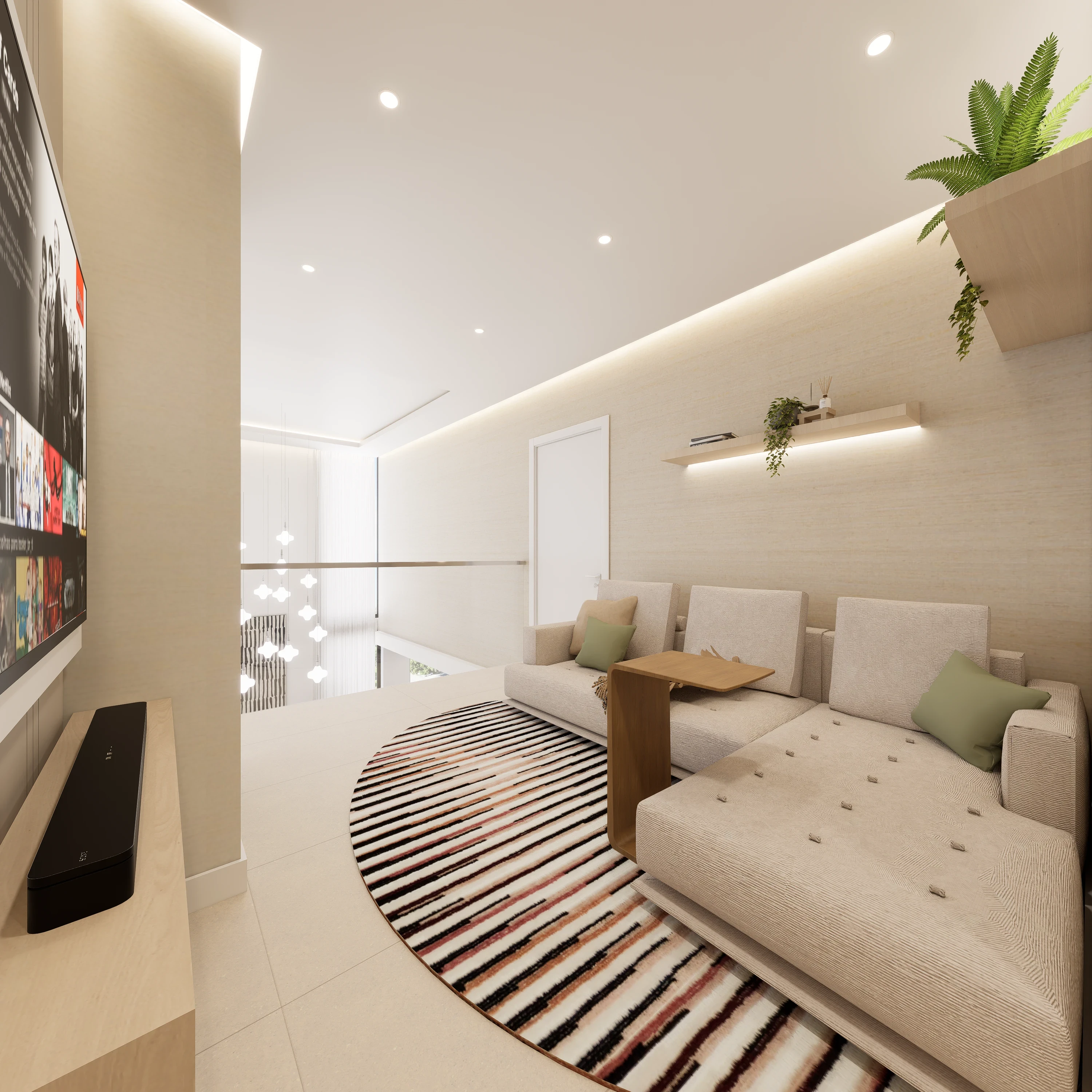 nfinity pool blending into the ocean view, minimalist sun loungers in soft neutral fabric, curved architecture